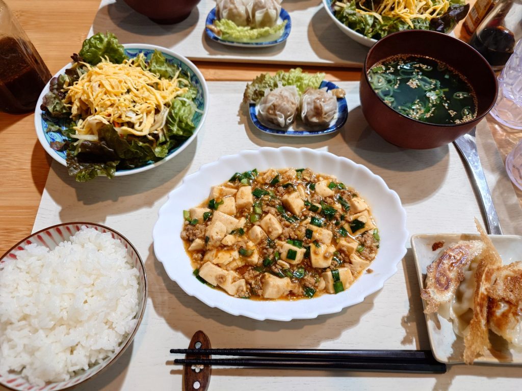 くたくたになり宿に戻ると、夕食は麻婆豆腐に餃子とシューマイでした。とても美味しかったです。