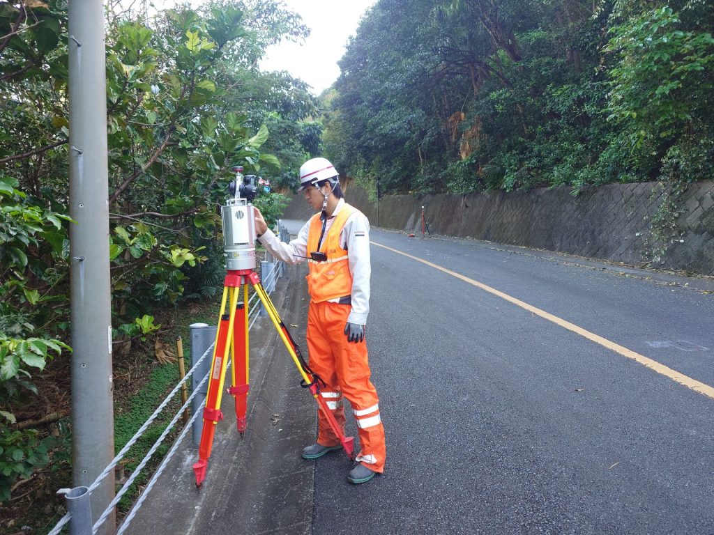 本日は地上レーザ測量を実施しました。