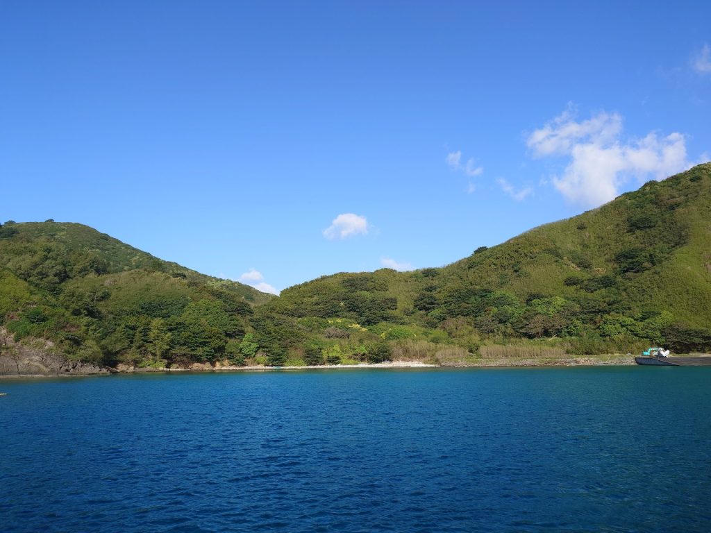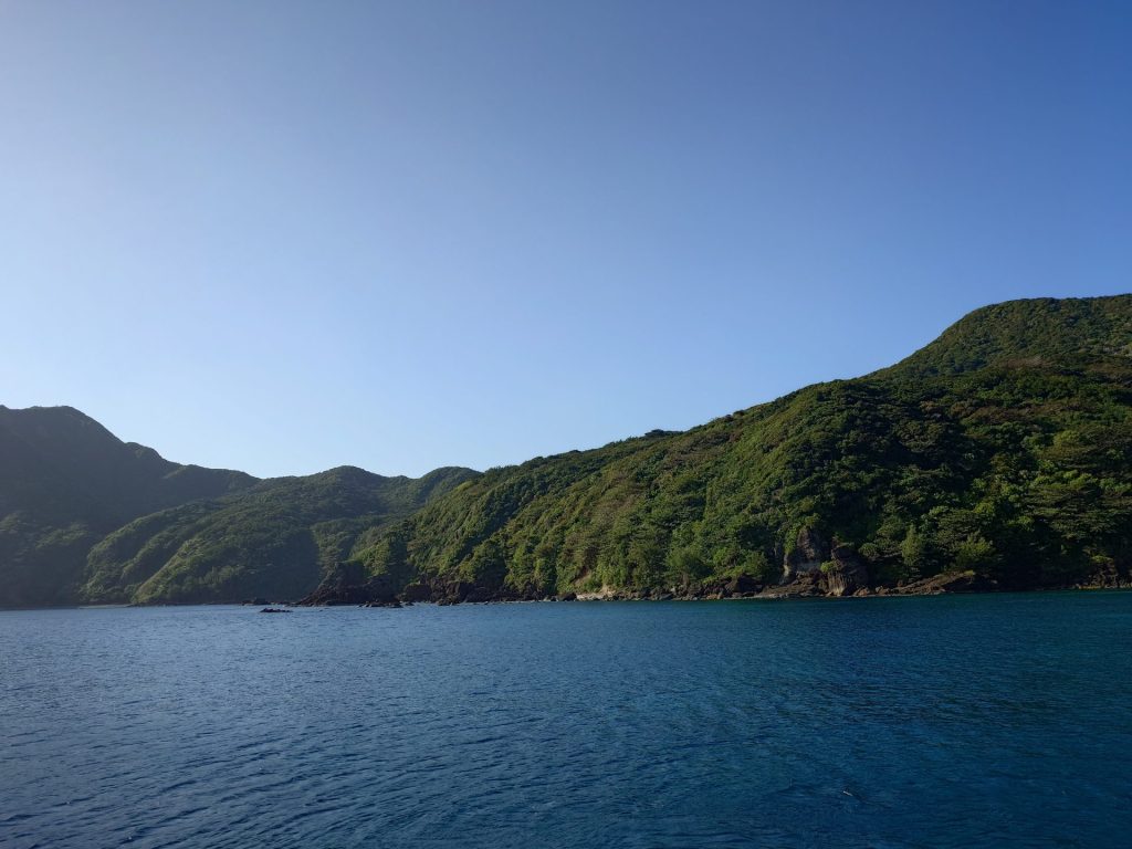 早朝6時から東港に出掛け、午前10時まで海洋資源調査を試みるも試料を得ることはできませんでした。しかし青い海と緑濃い山々の美しい景色に疲れを癒やされました。母島はとてもよい環境ですので、長野県に帰りたいという気持ちはあまり感じませんが、実家の黒豆柴に早く会いたいです。